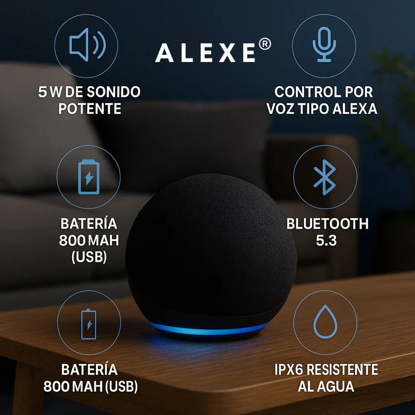 Parlante inteligente con Alexa: controla tu música, alarmas y dispositivos del hogar con simples comandos de voz. Ideal para automatizar rutinas, obtener información al instante y disfrutar sonido de calidad en cualquier espacio. Compacto, rápido y práctico para facilitar tu día a día.